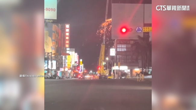 民眾說:「2個工人,他們就是用吊車吊著,昨天(4號)情況就是很多火花,真的很像煙火,覺得其實很危險,但他們交管有做好。」