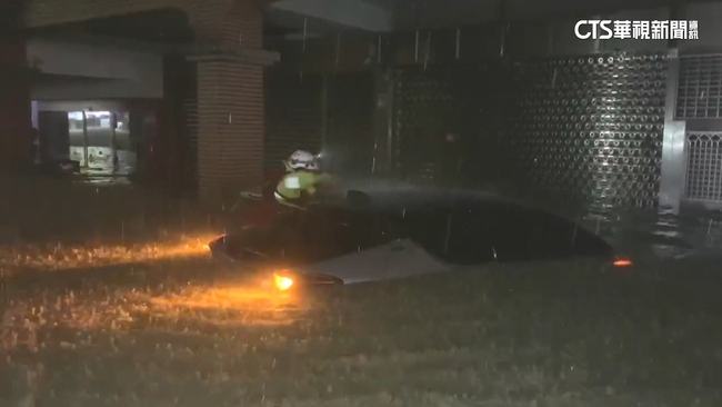 有汽車車輛幾乎整個滅頂,消防人員狂敲車門,要檢查車內是否有人受困,同時還有居民住家,水淹過一層樓高度,人只得暫時先待在二樓,等待軍消橡皮艇緊急救援,一個晚上不到6個小時,從積水淹到腰部高度,暴雨重創蘇澳。