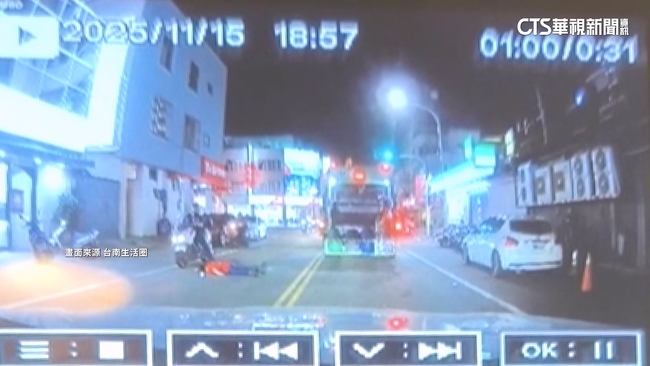 意外發生在台南仁德區,15日晚上接近7點,邱姓婦人沒走斑馬線,直接穿越馬路,追上停等紅燈的垃圾車,丟完準備再穿越車道回去,但當時已經綠燈,對向車道車輛行駛而來,邱女疑因視線死角,加上沒注意燈號,一跨過雙黃線就和騎士碰撞,當場臉部朝下倒地傷勢嚴重,外籍男騎士也噴飛出去,一樣受傷。