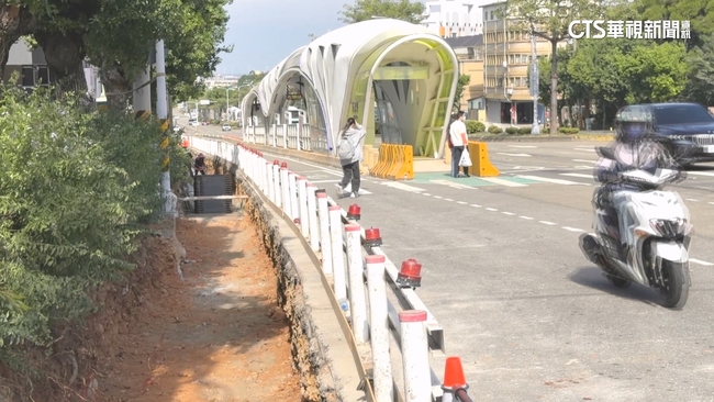 公車乘客說:「這裡滿常發生車禍,應該要有個地方,可以讓我們過。」人行道挖洞施工,行人不好走,慢車道也封閉了起來,機車騎士只能走BRT車道,跟公車擠在一起有點危險。