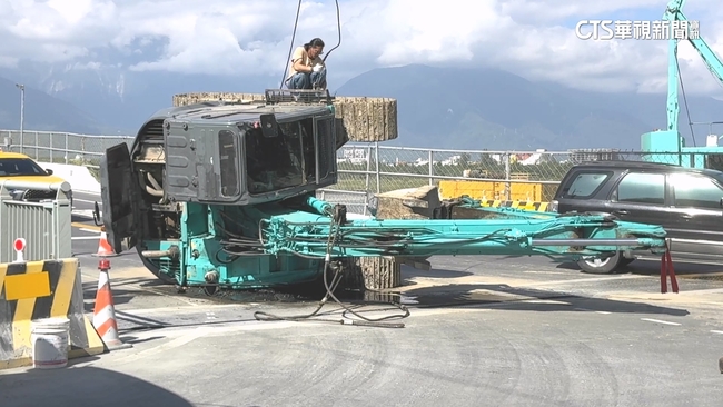 到了中午12點20分,工作人員出動吊車,大家小心翼翼,盯著怪手被重新放回拖板車上,伸手扶了扶就怕再有任何閃失,幸好翻覆意外沒有造成任何人員傷亡,花蓮縣鹽寮派出所副所長曾添富說:「駕駛執照正常,酒測為零,詳細事故原因仍有待進一步釐清。」