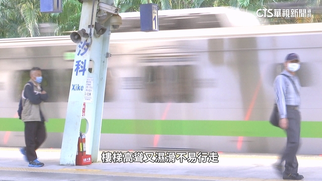 民眾說:「這個距離是很大一條好幾百公尺,對出入的人不管是南站北站的人,都太長了,然後有時候你下雨天,這邊也會漏水,汐科上班的人都快要瘋掉了,快車過的時候,有一點危險性。」
