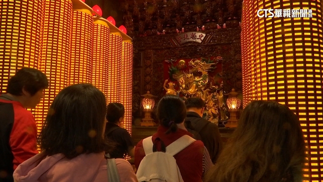 排隊民眾說:「幾點過來,三點,五個家庭大家輪流排,大家輪流排,有的人就可以去廁所,你祈福心願是什麼,小孩學測考好一點,你今年第一回合就拿到,是,再拍手一次。」廟方也布置了電子螢幕,顯示當下登記的號碼順序,讓抽到號碼的民眾心裡有譜,是不是快輪到自己了,為家人點一盞燈,終於捷足先登。