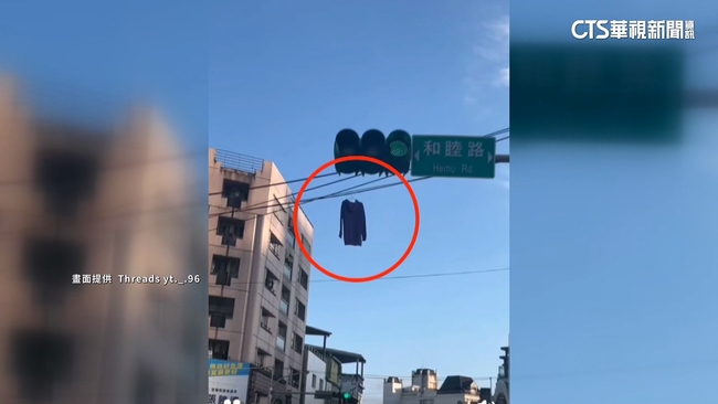 目擊民眾說:「哈哈哈哈哈哈哈哈,這個太扯了啦。」駕駛們笑到上氣不接下氣,到底是什麼事情這麼開心,仔細一看,咦你怎麼在那裡,一件帽踢就這樣,大喇喇掛在紅綠燈後面的電線上,隨著風輕輕轉動,像在展示一般,瞬間吸走所有目光,但這裡可不是曬衣場。