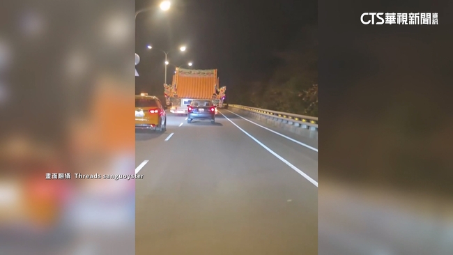 民眾:「它是廟宇嗎,還滿特別的,但是也不會特別想去超過或者是...,它這樣已經占用到兩個車道了對不對,因為我也是第一次看到,滿有趣的。」