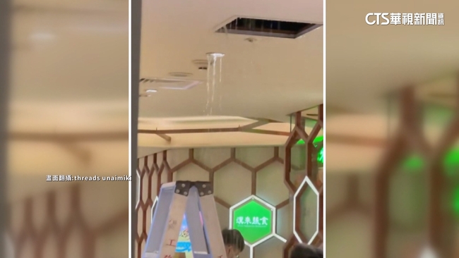 民眾說:「他處理速度大概就半小時以內,我覺得是很快的,25分鐘我覺得相當迅速,有遇到相關經驗的話,可能幫你換個位置而已。」百貨公司的公關表示,當時餐廳外的天花板不停漏水,是因為冰水送風機管路破損,導致大漏水大約25分鐘,當下立刻派人緊急處理現場,還有勘察管路,後續也順利將水止住。