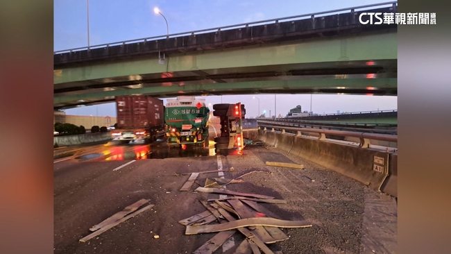 消防人員趕到現場救援,幸好這起事故,沒有引發火警,也沒有人受傷,根據了解,是一輛聯結車和油罐車碰撞,油罐車的車體破損漏油,也嚴重佔用外側車道及路肩,造成後方車流回堵好幾公里,詳細的事故原因,還有待後續釐清。