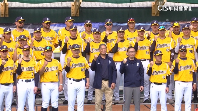 中信兄弟球團:「中信兄弟總冠軍。」黃衫軍舉行開訓典禮,誓言重返榮耀,抱回總冠軍,球員場上拚,球迷進場應援當後盾。