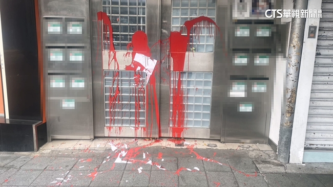 2月4日凌晨,這次換一樓大門被潑漆,還丟恐嚇傳單,梁姓嫌犯6小時後搭機出境,兩起案件手法類似,啟人疑竇。