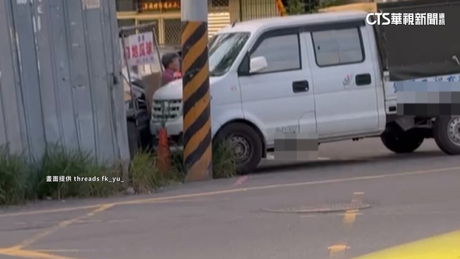 畫面右上方,有輛白色貨車一路往前滑行,經過路口沒有減速繼續滑,接著直接往前撞,波及路口賣地瓜球的阿嬤,人受傷了,事發當下貨車左前輪,還卡在路旁電線桿,阿嬤還在原地動也不動,疑似受到驚嚇,回想當時她還心有餘悸。