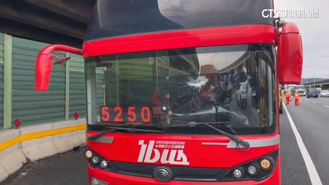 警方獲報到場,協助現場接駁,事發就在27日中午11點多,國道1號北向三重路段,當時客運載客從桃園南崁往台北方向行駛,疑似前方內車道的小客車輾壓到鐵片,再往後飛砸客運擋風玻璃,50歲林姓駕駛額頭遭鐵片擦傷,44名乘客則由其他輛客運接駁離開。