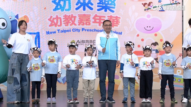主持人:「市長跟寶貝們在做的是小火車。」新北市長侯友宜陪著小朋友,敲敲打打動手又動腦製作小火車,還玩起黏土拼貼喜怒哀樂,今年嘉年華以全齡共融親子共學為主軸,規劃AI互動體驗等六大主題區,展示新北幼教成果,市長侯友宜說新北市府幼教老師和團體,公私協力提升教學環境,讓新北幼教環境幸福感全台之冠。