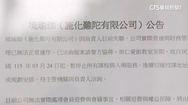 瑜珈教室受害者:「後續有聽到很多資深老師,他們都有欠,都有(被)欠薪水的這個部分。」受害不只一人,這間瑜珈教室不只基隆有,全台共三間分店,但昨(24)日無預警公告停業,聲稱是因負責人失聯,無法正常營運管理財務。