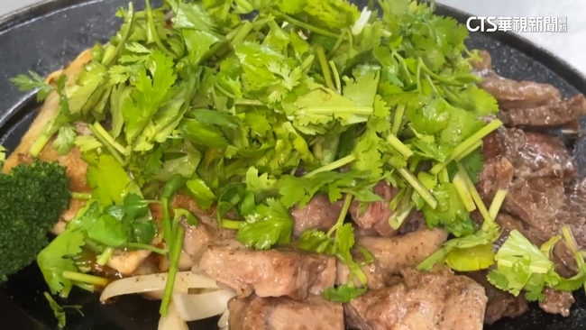 鏡頭再轉到屏東,厚切肉排高溫油煎逼出肉汁,每一面均勻上色,接著起鍋擺盤,厚實雞腿排搭配梅花豬與牛排,一次三種肉食享受,銷魂的鐵板料理,再交織滿滿香菜味,業者各出奇招,靠著霸氣份量和創意料理,在競爭激烈的餐飲市場中,吸引消費者目光。