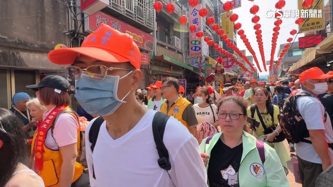 苗栗縣通宵白沙屯媽祖,晚間即將從拱天宮起駕出發,熱鬧氛圍已經圍繞在拱天宮,整條街道擠滿了香燈腳,警方初步統計,中午時已經有15萬人湧入白沙屯,數量持續增加,晚間出發時,很可能會突破25萬人,人潮中有一名來自台北的陳先生,穿著重達50公斤的盔甲、騎著白馬到拱天宮找媽祖,也有來自義大利的大學交換生收到同學邀約,站在路邊發結緣品,體驗媽祖文化,民眾和