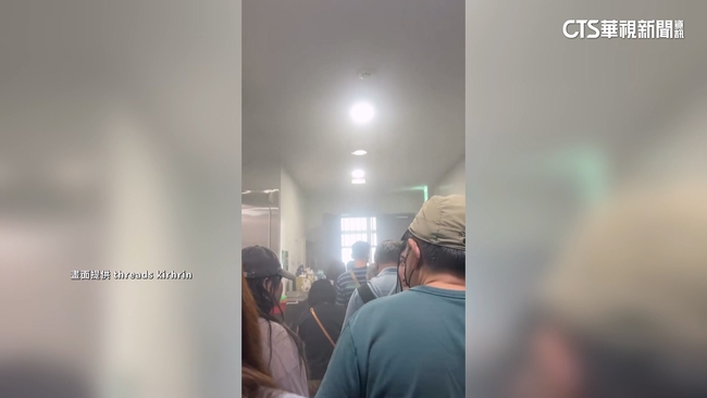 樓梯間擠滿人潮,還可以看到煙霧瀰漫在空氣當中,不過許多民眾根本還搞不清楚狀況,還有不少員工工作做到一半就被緊急疏散,疏散民眾說:「聽到警報就下來了,主管說就是趕快先下來疏散這樣。」、「當下其實滿驚慌失措的,就是(聞到)滿濃厚然後滿刺鼻的味道,所以大家就是趕快下樓這樣。」