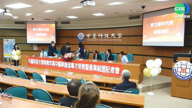 因應醫事護理人才就業市場暢旺需求,中臺科技大學牽手青年高中及員榮、署立臺中醫院、培力藥品等醫護機構,共同簽署策略聯盟,期望透過結盟中部醫療體系,打造「在地就學」、「在地就業」的產學一條龍模式,將大學端專業師資與高端設施引入高職端,強化學生專業職能,共同攜手培育醫事護理人才。