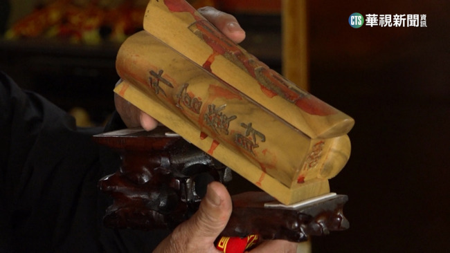 信眾虔誠膜拜,但仔細看,廟宇內供俸的不是神像,而是一座金色棺材,位在后里區的雷筳殿,廟方表示,這座金棺被稱為金元玉天老祖,除了求平安外,還會有不少業務員,會特地留下名片在供桌上,希望祈求升官發財。