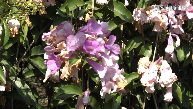 仔細看這不是牽牛花,而是葉子有蒜頭味的蒜香藤,二崙鄉湳仔社區栽種特別的花,社區用5年的時間,經過志工跟民眾的照顧,在10月到12月開花,吸引很多民眾來走踏看花,一起認識這個趣味的植物。湳仔社區發展協會理事長廖世恭說:「它這個蒜香藤,它最特別的是它的葉子,你給它搓揉完聞一下,蒜頭味道很濃厚,所以才叫做蒜香藤。」