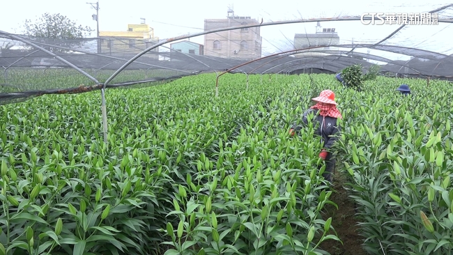 花農在田裡,忙著切花採收,準備出貨,隨著農曆春節腳步接近,過年應景花卉百合的需求也跟著增加,其中后里區是全台最大的冬季百合產區,光是產量就佔了全國約七成左右,台灣百合產業發展協會榮譽理事長羅弘奇說:「因為之前比較寒冷的關係,那今年的採收期有稍微延後一些,大概晚了兩三天,那不過以后里整體來看,后里的一個出貨量應該可以占到,整個預計計畫的七成,應該是沒問題。」