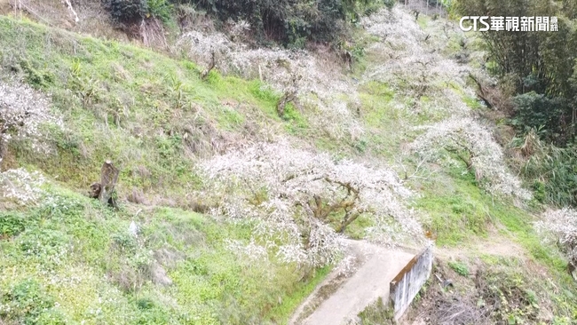 水里上安村的三部路上,也有一大片的梅區,最近已經花開5成左右,包括陳董梅園、張家梅園,都已經漸漸進入盛開期,梅農表示受到冷氣團的影響,梅花花期可以持續到過年期間。