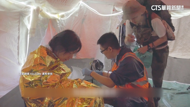 黑熊學院執行長朱福銘說:「他就是有一個人有一個急救的狀況,他快速地去回報,就是交接這個狀況,交接這個狀況的話,如果按照一般原則的話,必須要明確清晰快速,所以這都是我們一些訓練的一些過程。」