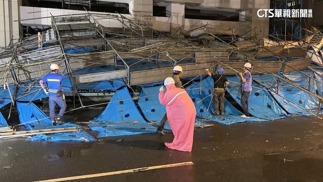 不只雷雨交加,昨晚雙北市還吹起狂風,新北市中和民樂路一處工地三層樓高的鷹架整片倒塌,波及到三部汽車,一度占據半個車道。工程公司派出20人到現場善後,也要聯絡受害車主討論後續賠償。