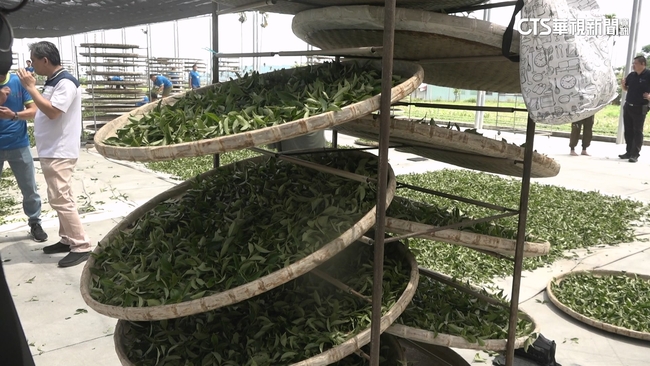 一大早茶菁剛採收,茶農就開始進行日光萎凋、室內靜置,每個步驟都按照標準來進行。這是由凍頂茶業發展協會,所舉辦的發酵茶製茶競賽研習,參加的茶農都非常厲害,讓現場都充滿茶葉的香味。