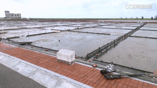 超過百年歷史的台南北門「井仔腳瓦盤鹽田」,是台灣現存最古老的鹽田,在2009年登錄為台南歷史建築文化資產,卻在這次的風災中被摧毀,一堆堆小鹽山全溶解,當地居民說損失初估上百萬,加上當地電力設備受損,就連周邊店家屋頂也被吹掀,復原期至少要半個月以上。