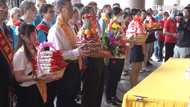 眾人虔誠向潭水亭觀音媽參拜,提前慶祝曆6月19日是觀音媽成道紀念日,很多誼子女專程回娘家祝壽,廟方熱鬧舉辦擲筊祈平安龜的活動,庇佑大家下半年平安順利。