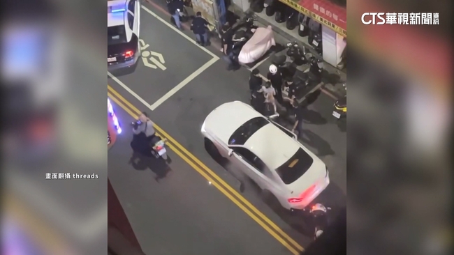 新北市警新莊分局執勤員警說:「熄火,妳剛剛違規,妳剛剛在用手機。」員警巡邏時看到明明綠燈了,但白車卻是停在路中間,上前準備攔查,但駕駛不僅不配合,還試圖衝撞逃逸,新北市警新莊分局執勤員警說:「不要動了。」員警拿出警棍,猛敲駕駛座玻璃,但駕駛執意往前開。