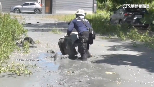 記者盧怡撰說:「這一次災情的重點之一就是泥濘,你可以看到當我們今天,如果腳是踩在這個泥巴堆裡面的話,拔起來真的就像被「吸盤」吸住一樣,非常地難拔,到現在結果都還是拔不太出來,所以不論是對於逃命還是救災,都是一大困難。」