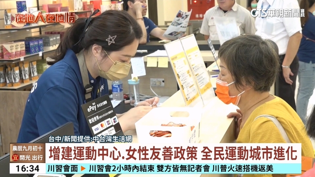 台中市運動局長游志祥說:「成長的部分,從108年成長到現在,增加21座,是全國最多,總場館數達到175座,也是全國第二,從今年3月8號開始提供女性,包括使用體適能中心、游泳池,從30天增加到40天,月卡的部分,讓所有女性平常在忙家務還有工作之餘,能夠進來我們國運(國民運動中心)來使用。」