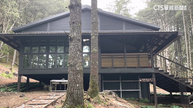推開山屋大門,交誼廳空間寬敞明亮,嶄新的木頭桌椅擺放整齊,牆壁還設有多個插座,再進入廚房空間,門上掛起進出請換拖鞋標示,左側鞋架也放上藍色、黃色拖鞋,讓登山客住宿更舒適,這裡是玉管處歷經兩年興建的關山高屋。