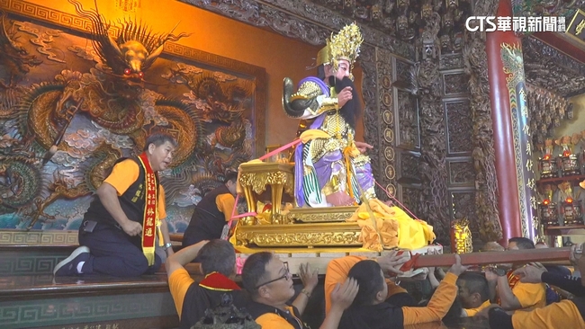 貴賓們輪流為雕刻好的王母娘娘及月下老人等神像點眼開光,太平大登山玉虛金鋒宮是當地信仰中心,之前管委會發現北極玄天三大帝及王母娘娘這兩尊神像遭到土蜂築巢、木頭水心腐朽嚴重,信徒因而集資,重新雕刻神像,這天也舉行入火安座。