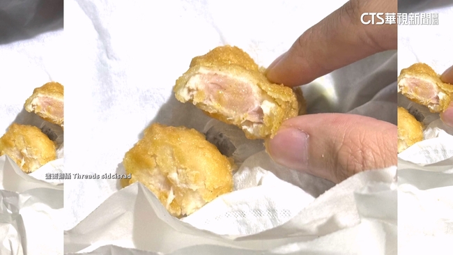 非當事民眾說:「這樣很噁心吧,萬一小朋友吃到,這樣子腸胃會不太好,會拉肚子吧,像我今天就是買給小朋友吃,業者應該都有固定炸的時間,一定會確保它(雞塊)熟的狀態,我的話會很傻眼,很驚訝啊,這麼大的店,怎麼可能沒有熟,這種制度化的標準,怎麼會出沒有熟的雞塊。」
