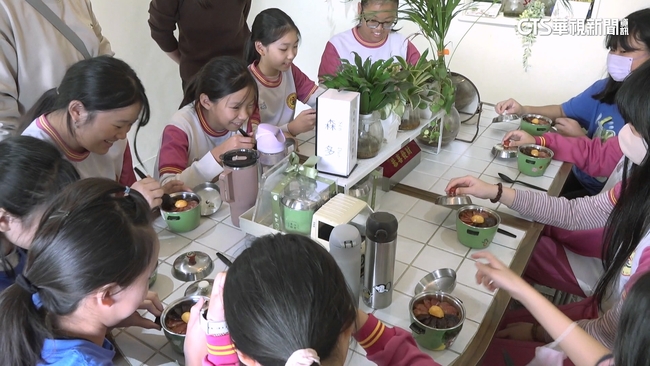 拿著小電鍋,裡面裝的,是今天的午餐,福陽國小的學童迫不及待開動,這天不在學校吃營養午餐,而是走到校外,要來體驗什麼叫做漆食文化。