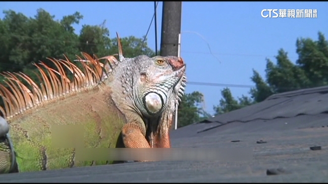 綠鬣蜥大舉入侵台灣中南部,其中以台南、屏東災情最為慘重,在台南有一隻體長1.5公尺的「黃金」綠鬣蜥長期「逍遙法外」,最近終於「落網」,從樹上遭擊落。