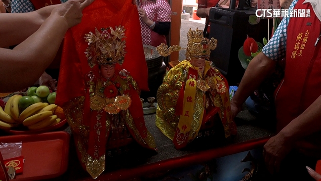 供桌上擺滿聘禮,一旁還有傳統三輪車,眾人歡喜迎接土地婆準備出嫁,要從樹德里福德祠嫁到工學福德祠,不少信眾帶著禮物來添妝,場面相當熱鬧。工學福德祠總幹事黃元澈說:「我們按照傳統的儀式在進行,包括今天我們看到,我們來迎娶土地婆,我們是12大禮,我們有媒人婆,有八人大轎,我們用傳統習俗跟儀式,來迎請我們的土地婆。」