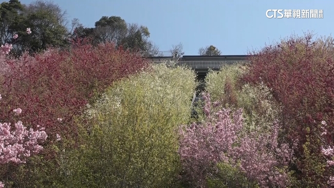 櫻花林管理員呂沅澤說:「這裡有三種櫻花,白色的是福爾摩沙櫻,然後比較粉紫的是八重櫻,然後跟另外一種富士櫻。」櫻花林管理員表示,園主當初打造這片彩色櫻花林,就是為著追求沒同款的水,希望清境地區有特別的旅遊感受。