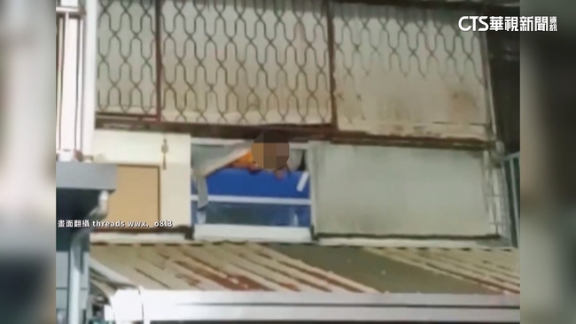 報案民眾說:「剛騎摩托車到這裡來就有一個妹妹,妹妹她在外面喊說要,就是救命啊這樣子,她就探(頭探)一半而已,然後我就想說怎麼了這樣子,然後就趕快報警打119這樣。」目擊民眾說:「在那個藍色布棚那裡啊,(二樓),嘿啊,她在那裡求救啊,啊我叫她不要緊張,等那個消防員救她下來。」