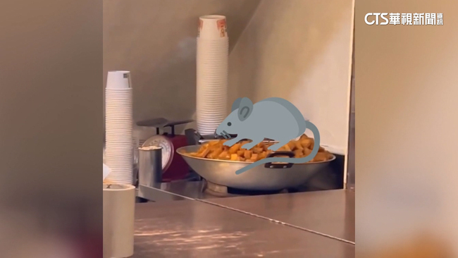 看到滿滿都是切好的番薯,民眾原本想買來吃,但休但幾咧,有隻大老鼠突然竄出,東張西望接著直接從鍋裡面,叼走一塊,咻咻咻又快速跑走,這一幕讓他傻眼,打消購買慾望,民眾說:「看到的話,大家都會嚇一跳,如果食材上面有老鼠出沒的話,代表這個環境,嚴重受到污染,應該要做有效的安全管理,比如,食材上要有罩子。」