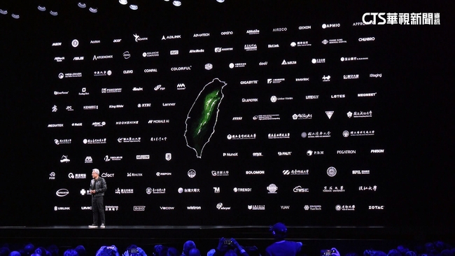 輝達執行長黃仁勳說:「輝達已經來台灣超過30年了,這裡是我們許多珍貴夥伴與摯友的家。」「AI教父」黃仁勳演說開始沒多久,再次用背板感謝台灣夥伴,而且去年只有列出43家,這回一舉暴增到122家,上排有宏碁和華碩,中間能看到鴻海、技嘉、聯發科和微星,下半部分也有和碩、群聯和緯穎,不難看出與輝達合作的陣容盛大多少。
