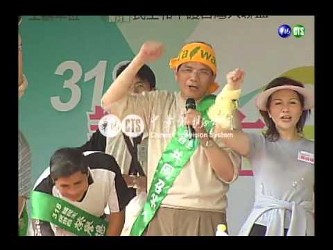 民進黨今天舉辦三一八護民主反併吞大遊行,超過十萬民眾上街頭高呼口號,主辦單位發放五萬條毛巾,向中國抗議毛巾傾銷,還高舉八百枚飛彈,抗議中國的武力威脅。