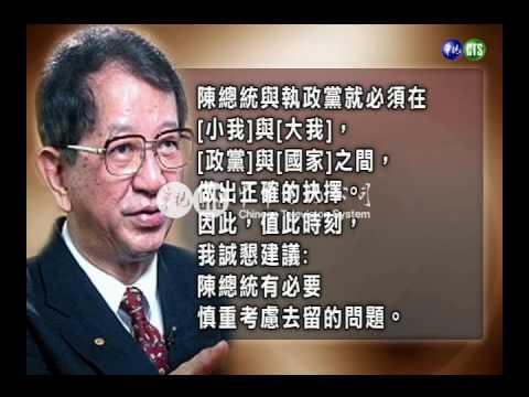 國務機要費案偵結起訴第一夫人之後,前中研院長李遠哲越洋正式發表公開信,語重心長建議陳總統慎重考慮去留,為政壇再投震憾彈。