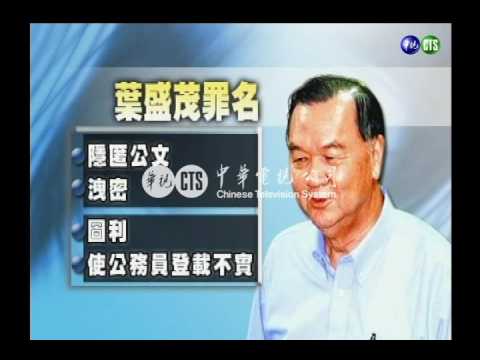 前調查局長葉盛茂涉嫌兩次向陳水扁洩漏洗錢情資,台北地方法院今天做出判決,葉盛茂被重判十年有期徒刑。