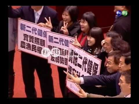 二代健保修法總算三讀過關。但是立法院從上午到下午,不斷上演表決大戰。民進黨團堅持家、戶總所得計算概念,得不到國民黨團的認同。在第十條攸關六類十四目及受刑人投保分類部分,表決結束後,民進黨立委也集體退席,僅留下一人在場內反對到底。