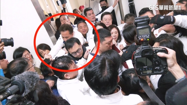一股作氣想突破重圍,國民黨團組三層人牆抵抗,朝野對峙2個多小時,爆發激烈肢體衝突,卡在國民黨立委包圍圈難以脫身,許智傑被邱鎮軍連續壓頭好幾下,造成臉頰右下方掛彩,還有議事人員也被波及。