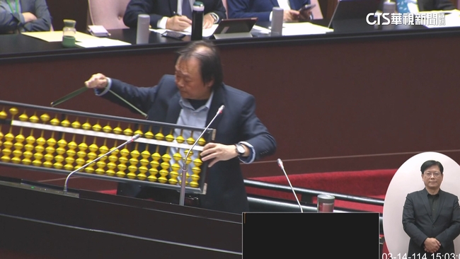 送上巨型算盤連後方經濟部長郭智輝,都抬起頭來認真聽,王世堅期許行政院把每分錢花在刀口上,還以冰箱來形容今年度總預算,行政院長卓榮泰VS.立委(民)王世堅說:「雖然冰箱裡打開,就剩兩條蔥,三顆蛋,連肉都沒一塊,好好去規劃,還是可以做出至少可以充飢。」