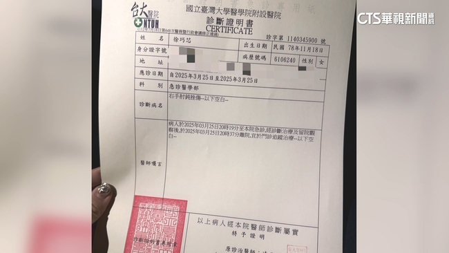 手拿拐杖民進黨團總召柯建銘,準備往桌上敲,一旁的議事人員見狀趕緊收起手機,就連前方的國民黨立委徐巧芯瞧見,也楞了一下立刻停下腳步,斷成兩截的拐杖噴飛出去,直接打在徐巧芯身上,桌子也被砸出一個洞,徐巧芯事後曬出驗傷單,不只同黨立委留言關心,立法院長韓國瑜也送暖,每個人都是人生父母養,直呼徐巧芯很委屈。
